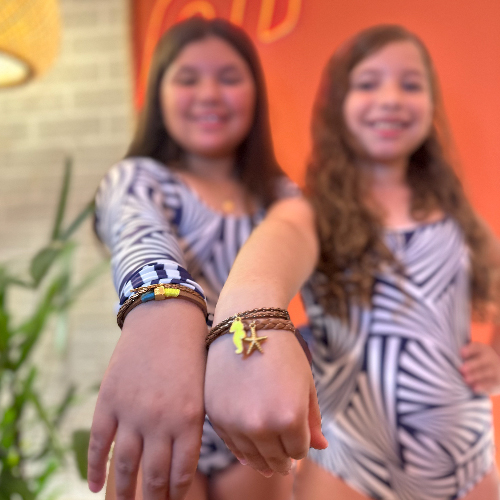 Com designs coloridos e cheios de personalidade, as pulseiras traduzem o estilo alegre e leve da infância, inspirando as crianças a expressarem quem são com liberdade.