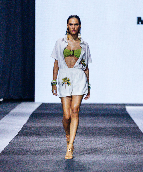 A inspiração resort permeou todo o desfile, com modelagens fluidas, tecidos leves e peças que ultrapassam a areia, acompanhando a mulher em momentos urbanos e sofisticados sem perder a essência praiana.